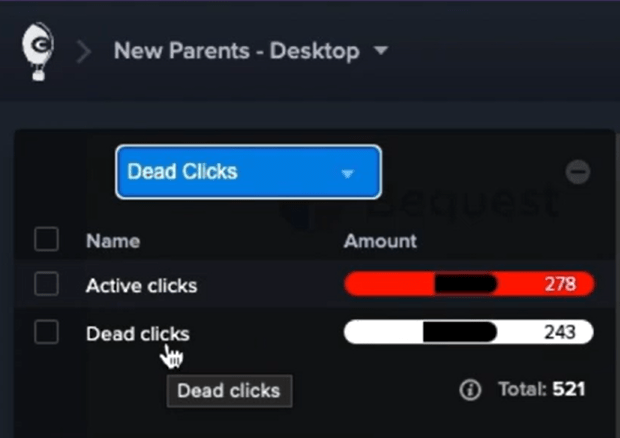 Dead clicks are related to elements many users are clicking on, but such elements don’t lead anywhere. User intent behind clicking such elements showcases that they wanted more information, a pop-up to come or go to a different page.